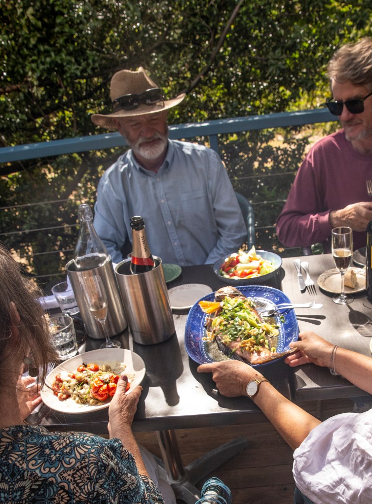 Casual dining by award winning author and Chef Eloise Emmett. Fully licensed with lots of non-alcohol choices. Fresh fish caught by Brendan. Affordable $59 per person 3 course shared feast to enjoy the best of what we offer when you visit. Menu features some popular classics like fish and chips and fish chowder to cater for the quicker and lighter meals. Our Seafood Paella and Steamed Parrot fish dishes to share are our guests favourite dishes.