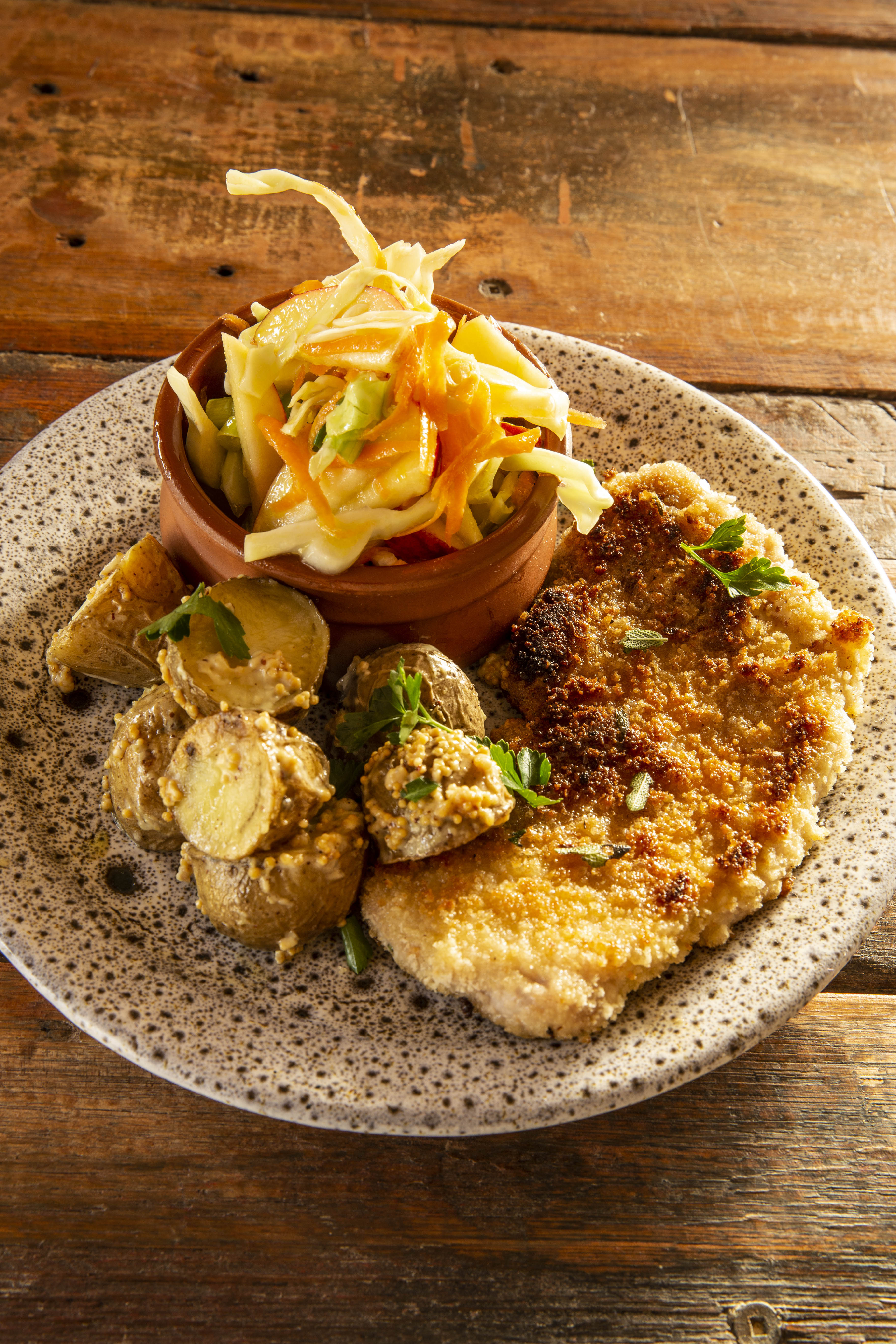 Pork steak with honey mustard sauce and potatoes $35