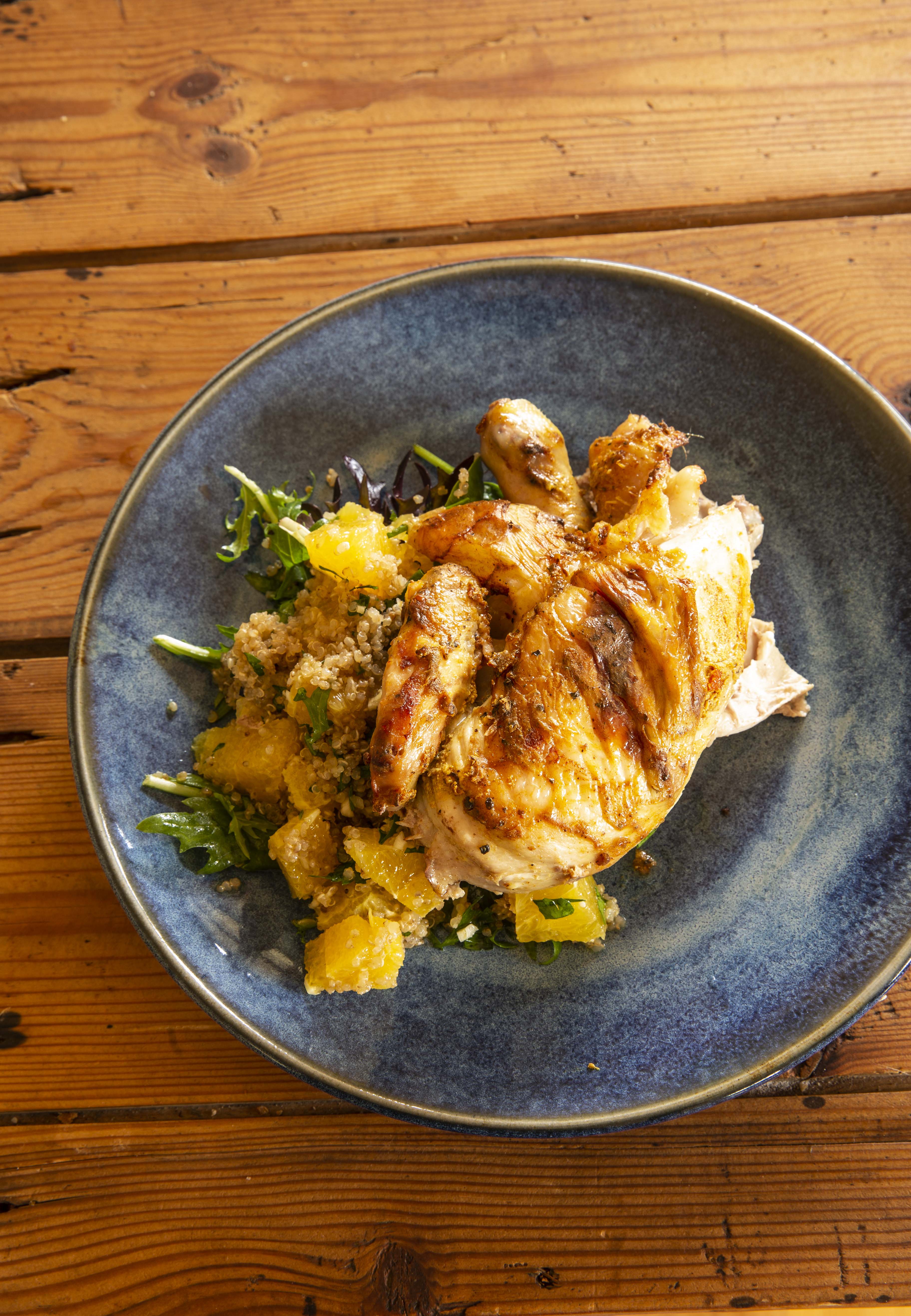 *Quail breast, blue cheese, apple and walnut with honey mustard $21 main $39